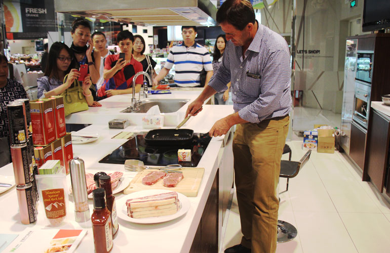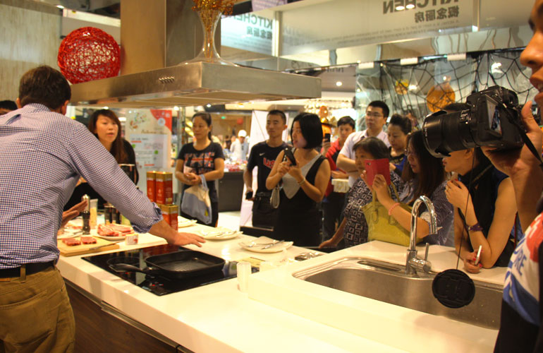 格芬牧場的牧場主格雷姆親臨主廚,宣講牛排煎制方法及格芬牧場現(xiàn)狀: