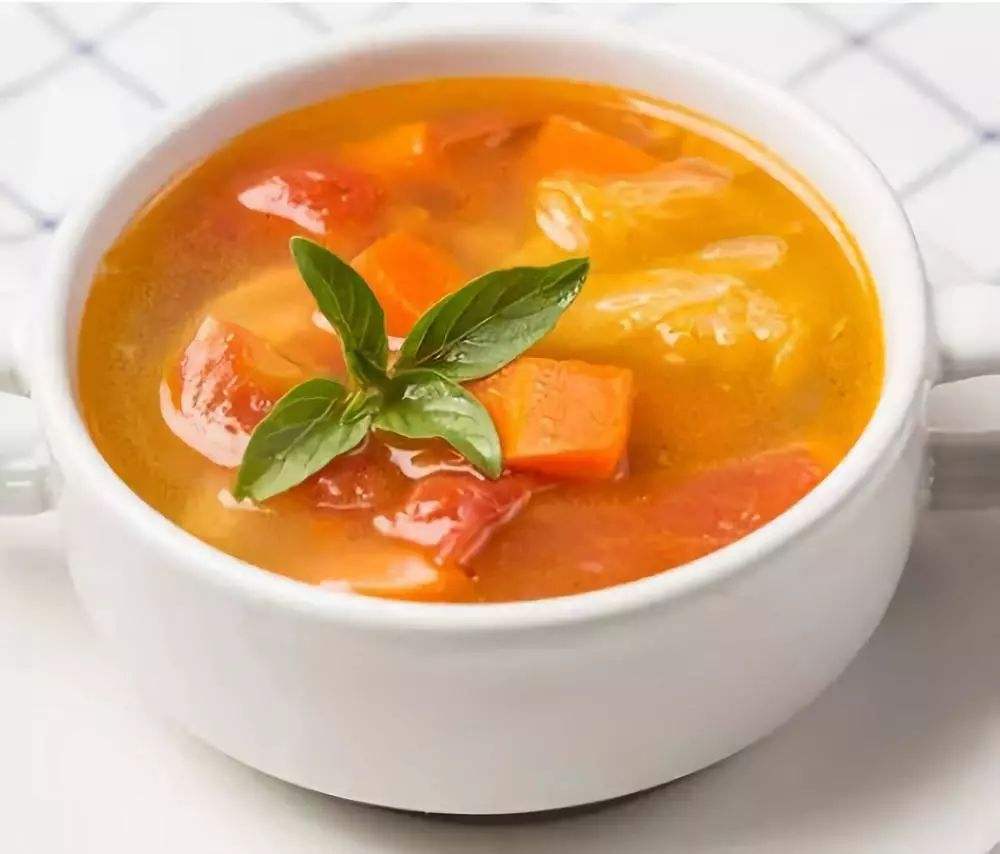 2、胡蘿卜、芹菜、西蘭花、番茄洗凈切塊;在沸水中煮至半熟撈出。